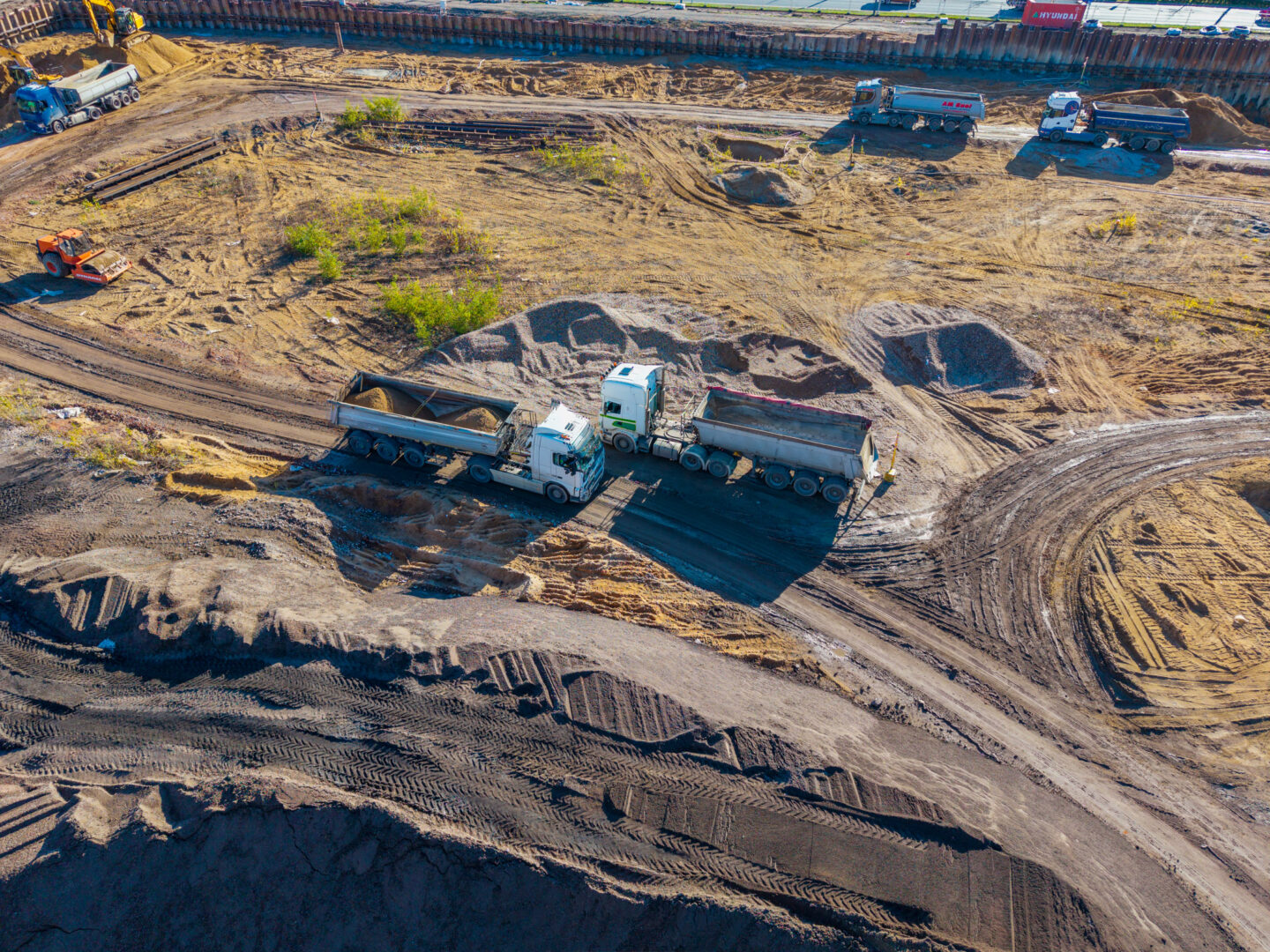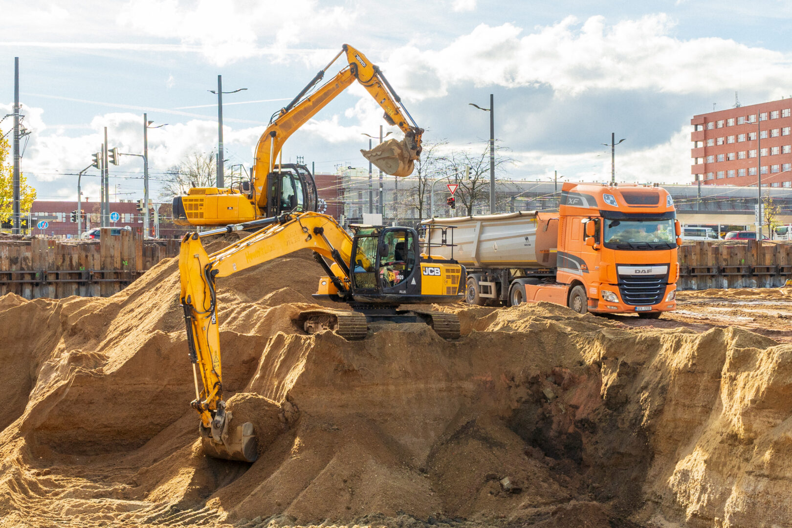 Intenzivně probíhala také těžba a odvoz zeminy na úroveň plánovaného založení stavby. Materiál je průběžně tříděn a odvážen k dalšímu využití nebo likvidaci.